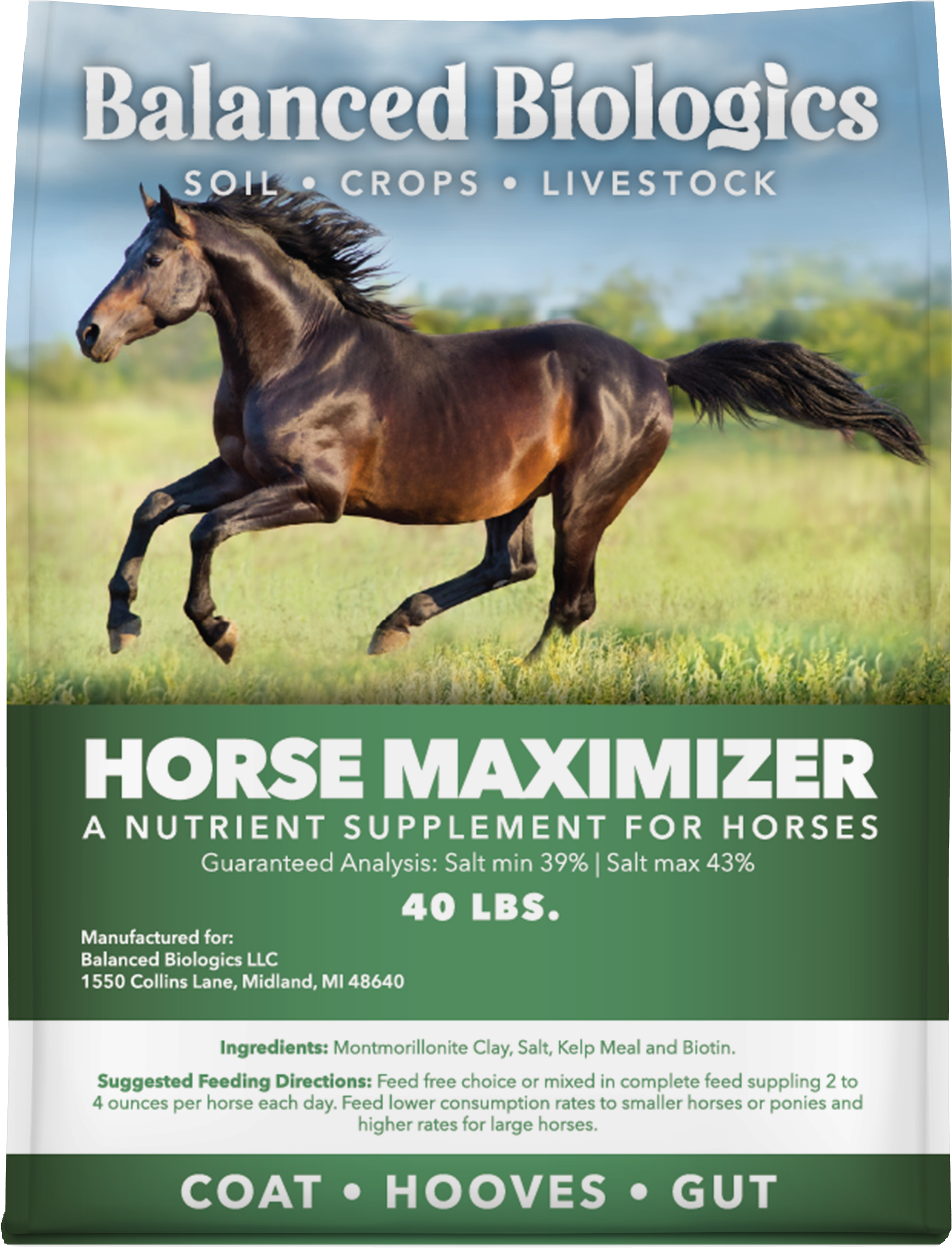 Horse maximizer is a blend of trace minerals biotin and sea salt.